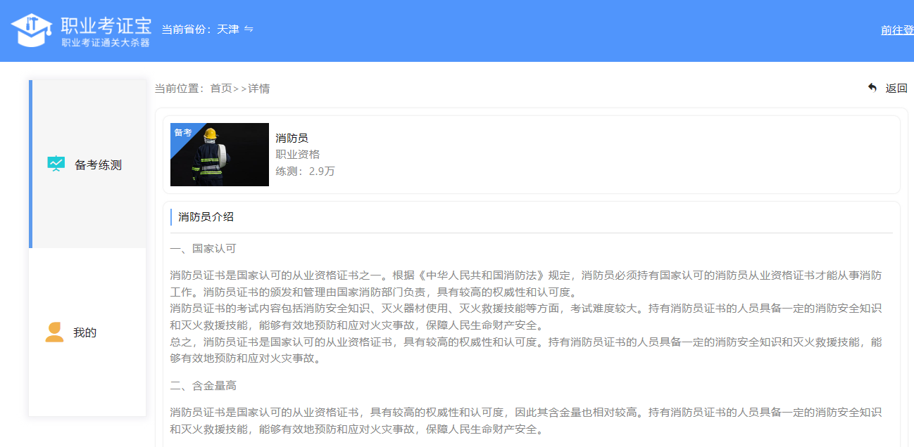- 可以使用职业考证宝中的消防员证书备考练习,针对重点和易错知识点进行智能练习。